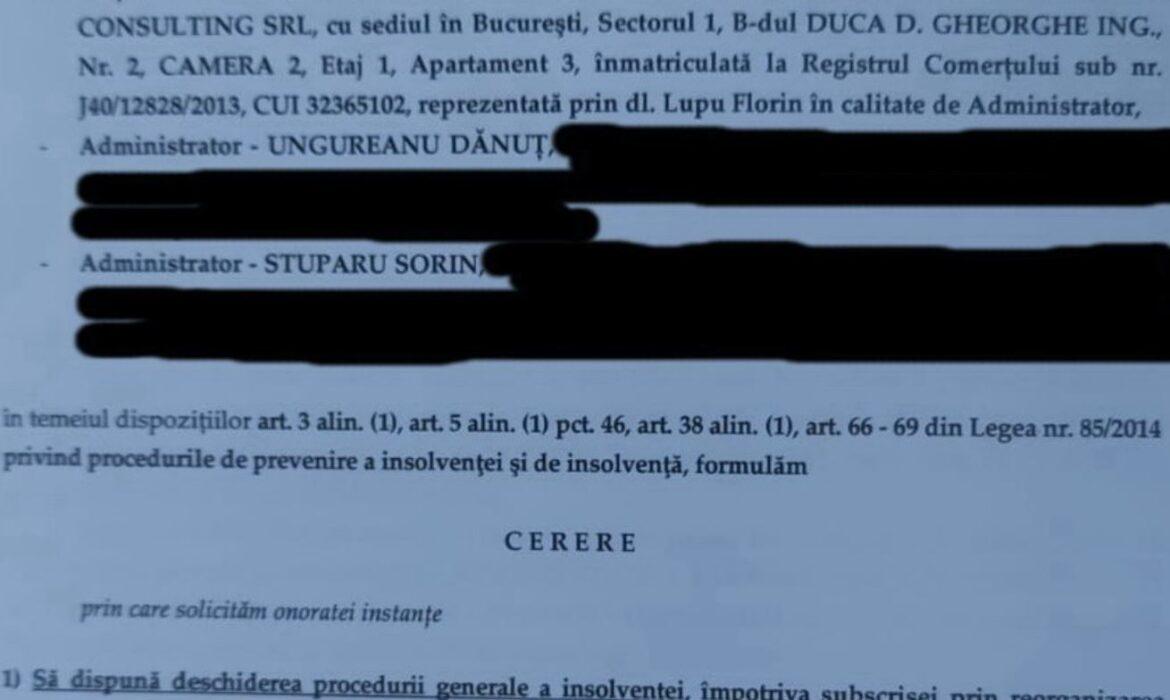 Joi, 11 aprilie 2024, președintele Consiliului de administrație al societății – Teranova Business & Consulting SRL, alături de alți doi administratori ai societății, Sorin Stuparu și Dănuț Ungureanu, au depus la Tribunalul Sibiu, o cerere de intrare în insolvență a companiei Electromontaj Carpaţi S.A. (vezi foto). Administratorii companiei din Sibiu au solicitat instanței să desemneze, în calitate de administrator judiciar, pe practicianul în insolvență Sierra Quadrant SPRL. O sursă din conducerea companiei a declarat publicației noastre că solicitanții cererii de intrare în insolvență ar fi invocat rezultatele economice nesatisfăcătoare înregistrate anul trecut. Dosarul a primit numărul de înregistrare 1058/85/2025.