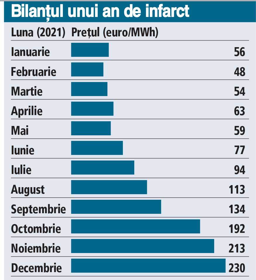 Anul 2021 s-a încheiat cu maximul absolut al energiei electrice, dar ritmul de scumpire s-a mai domolit